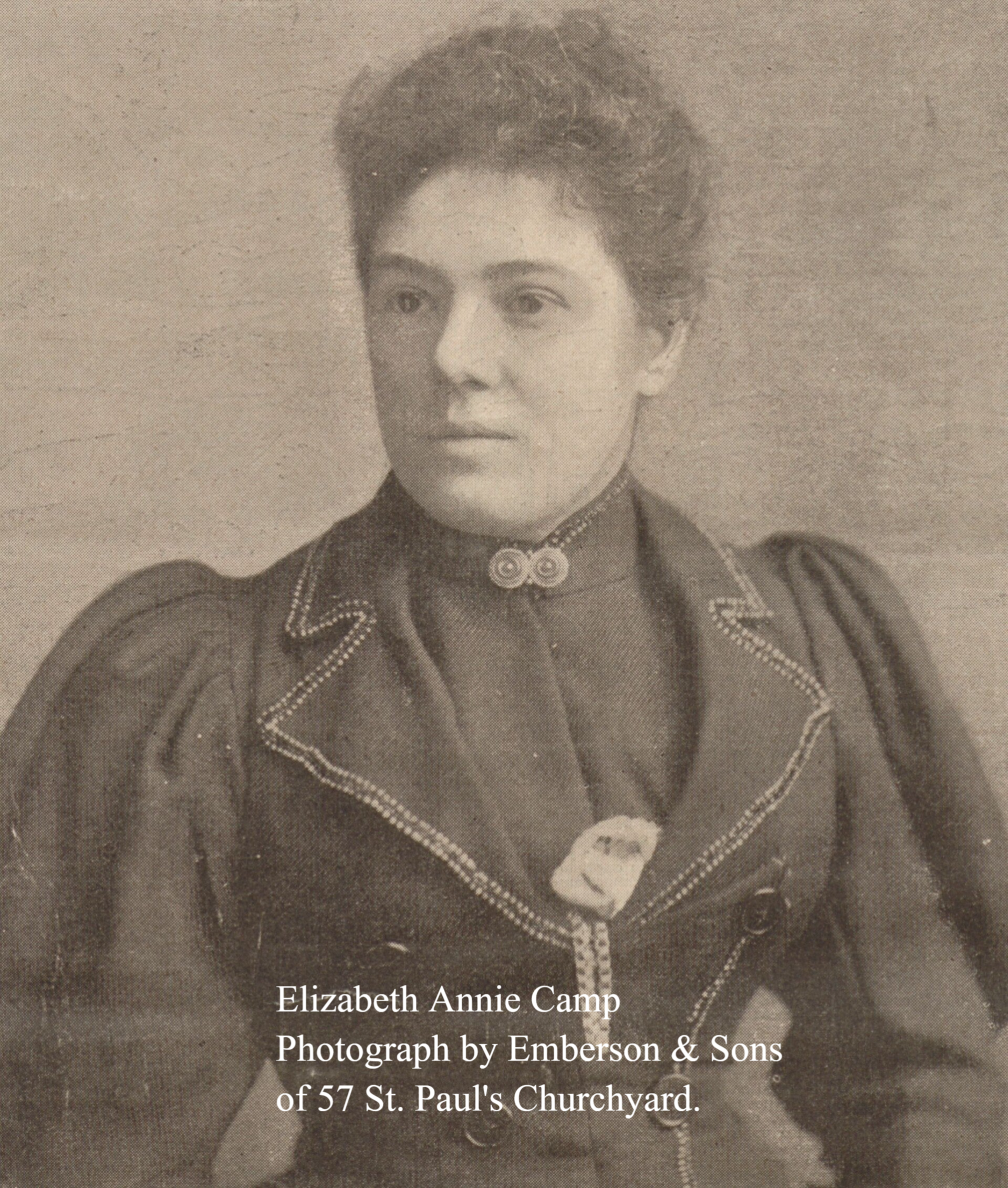 Elizabeth Annie Camp was born on the 19th of September 1863, at 4 Princes Street, Shoreditch in Middlesex, (East London) to William Thomas a tobacco moulder and Annie.